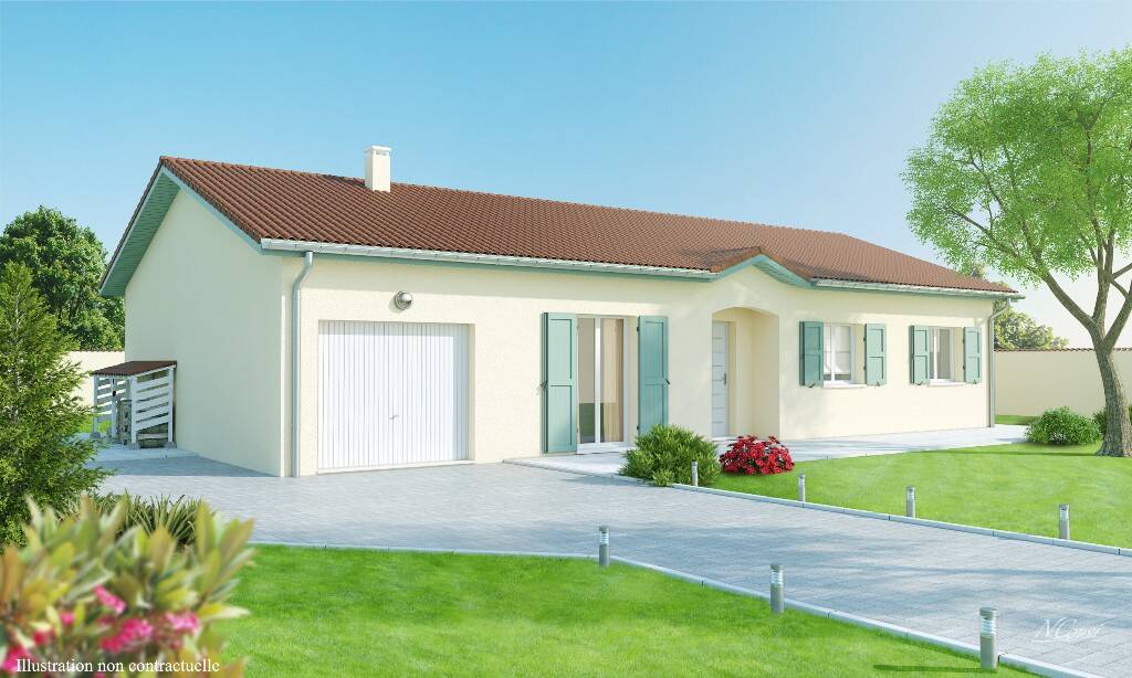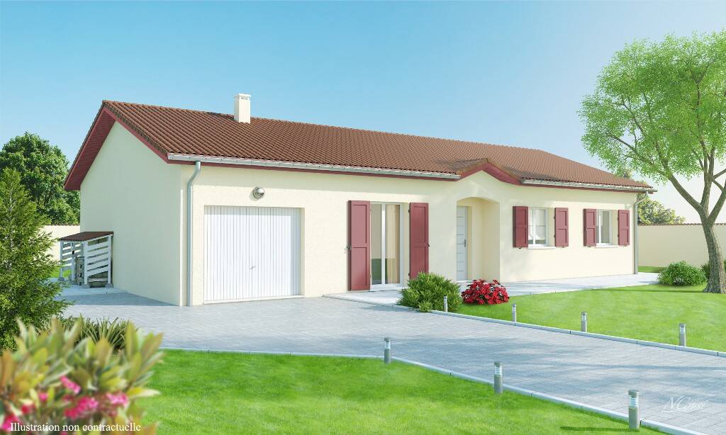 Ce modèle représente toute la tradition du plain-pied : espaces jour et nuit bien séparés, séjour en L, cuisine avec cellier donnant sur le garage. Le porche d'entrée agrémenté d'un houteau personnalise l'aspect de cette maison facile à vivre. Notre modèle Belles des cimes est une maison de plain-pied à partir de 80 m² habitables - 3 chambres et un garage. Ce modèle est intégralement personnalisable en surface, aménagements intérieurs et systèmes de chauffage. DO et garanties incluses - Conforme RT 2012.